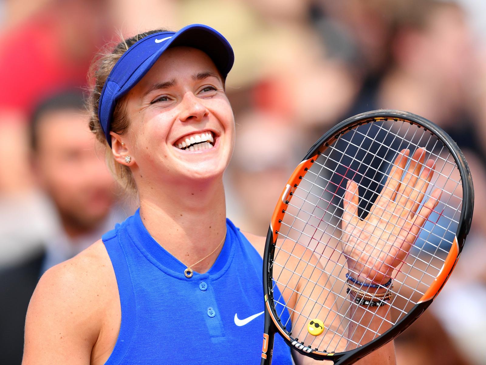 Обои Украинская теннисистка Элина Свитолина улыбается на корте