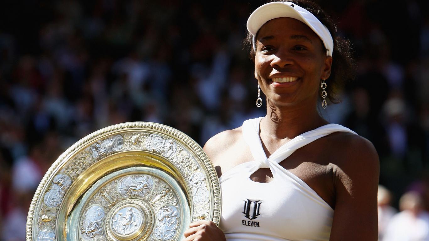 Обои Американская теннисистка Винус Уильямс с наградой на корте