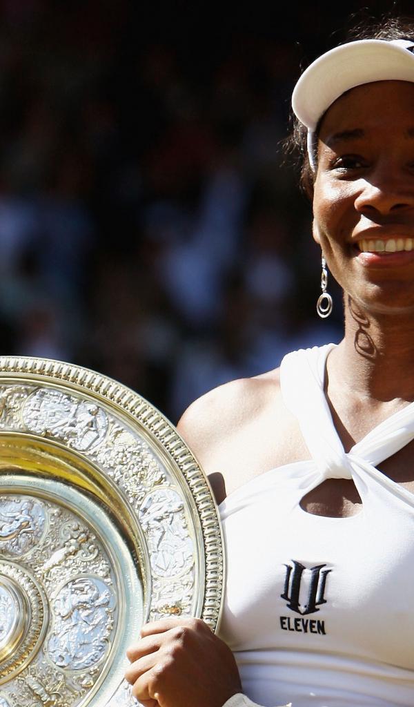Обои Американская теннисистка Винус Уильямс с наградой на корте