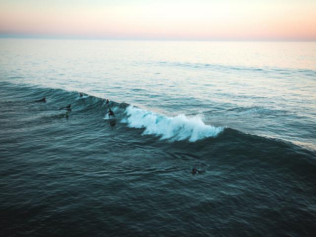 Обои Серфингисты ловят волну в море