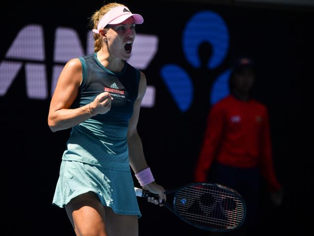 Обои Теннисистка Анжелика Кербер с ракеткой на корте