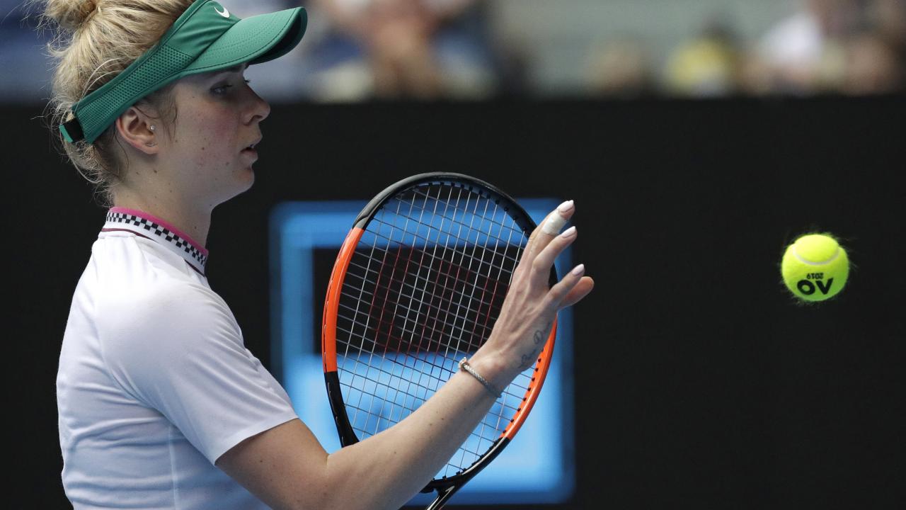 Обои Украинская теннисистка Элина Свитолина на корте с ракеткой
