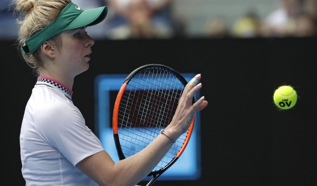 Обои Украинская теннисистка Элина Свитолина на корте с ракеткой