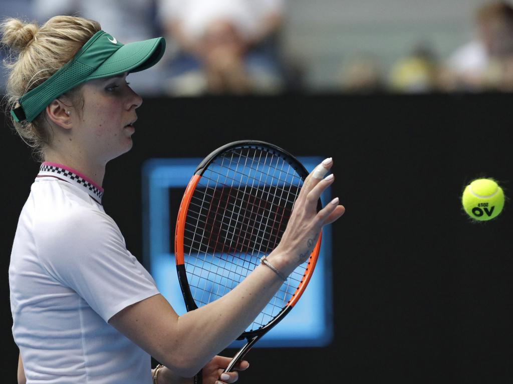 Обои Украинская теннисистка Элина Свитолина на корте с ракеткой