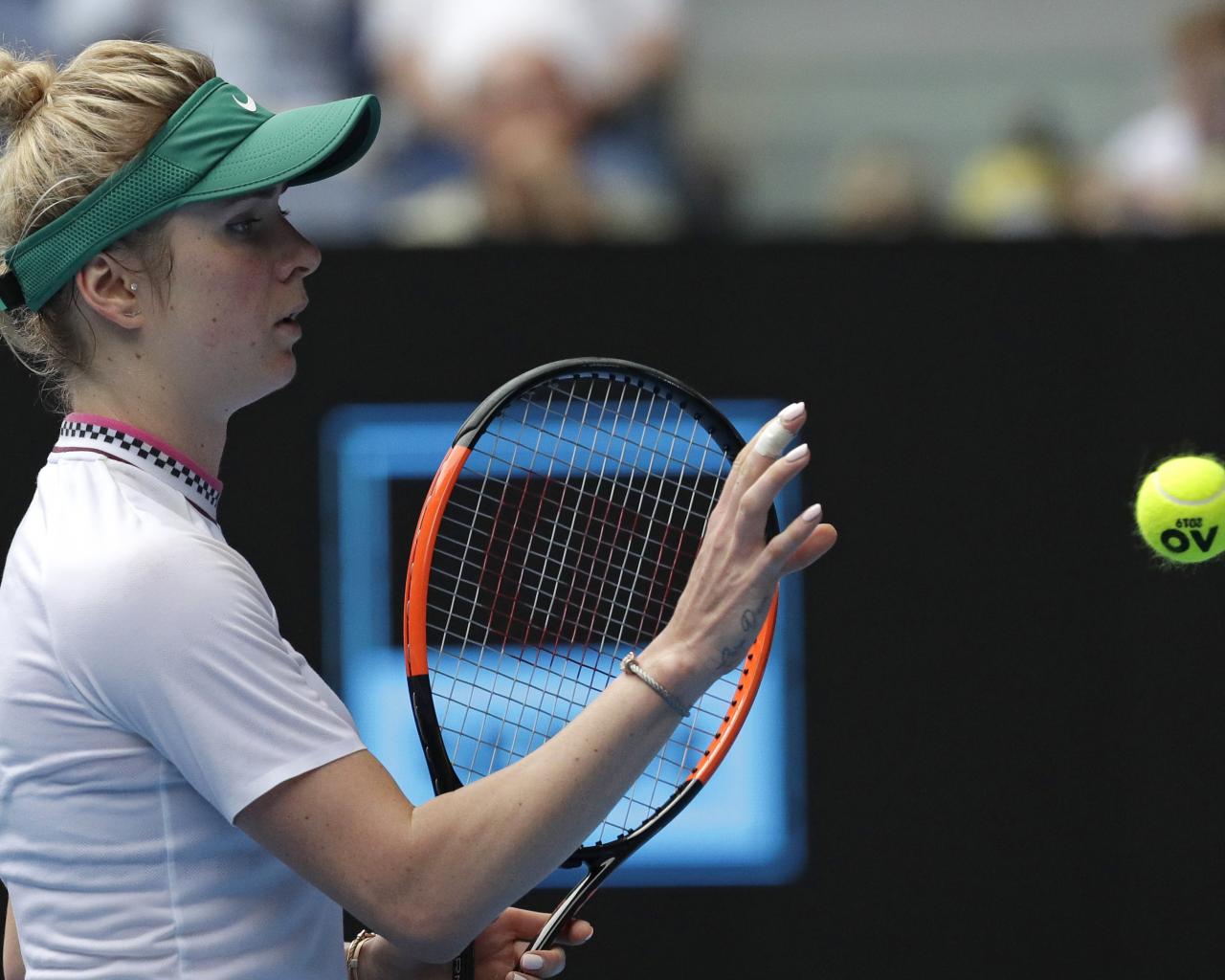 Обои Украинская теннисистка Элина Свитолина на корте с ракеткой