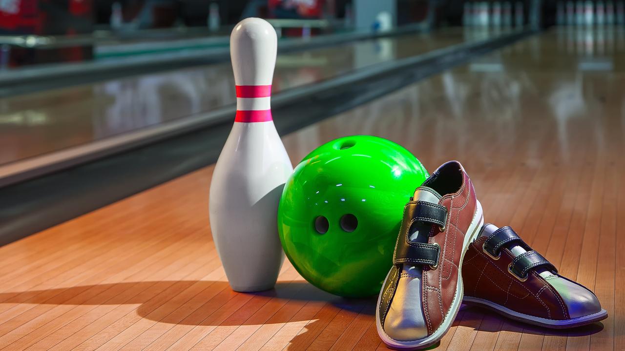 Обои Обувь для боулинга, шар и кегля
