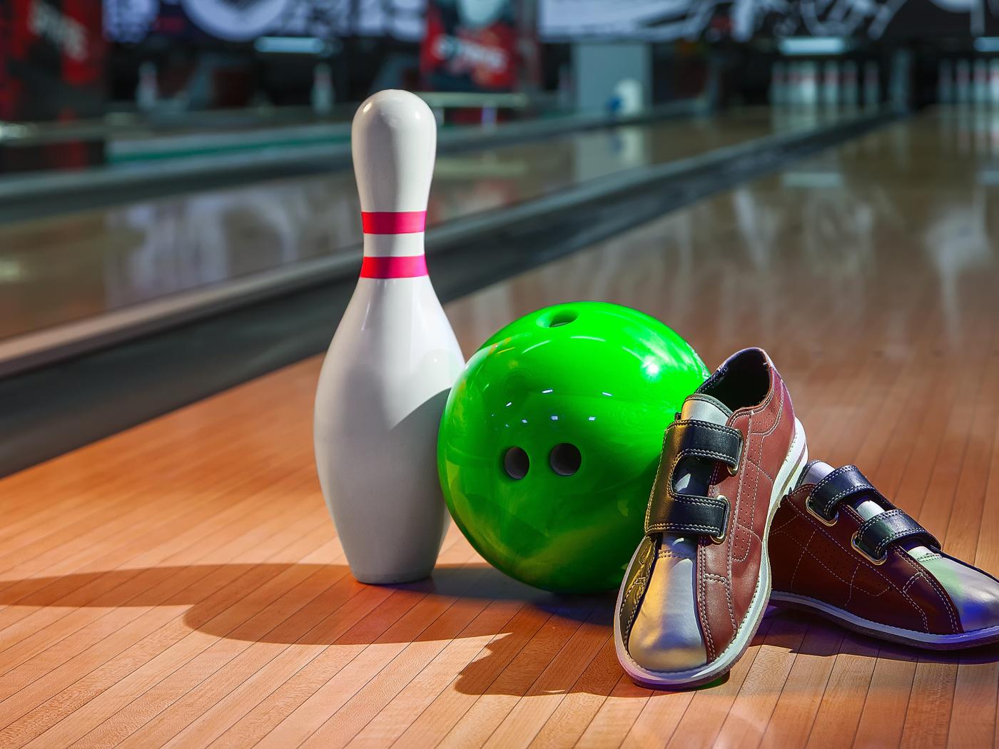 Обои Обувь для боулинга, шар и кегля
