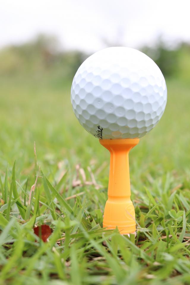 Обои Мячик для гольфа на поле с зеленой травой