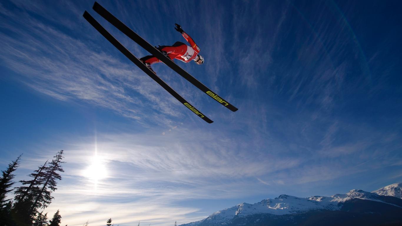 Обои Голубое небо, Прыжки на лыжах
