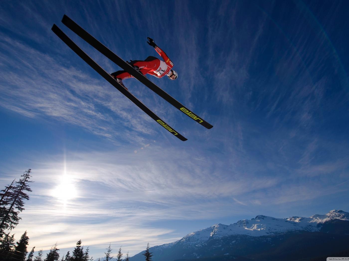 Обои Голубое небо, Прыжки на лыжах