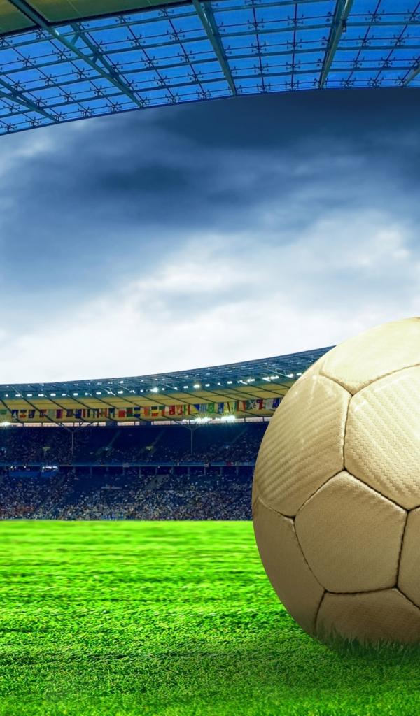 Обои Зеленая трава, Футбольный мяч, Футбольное поле