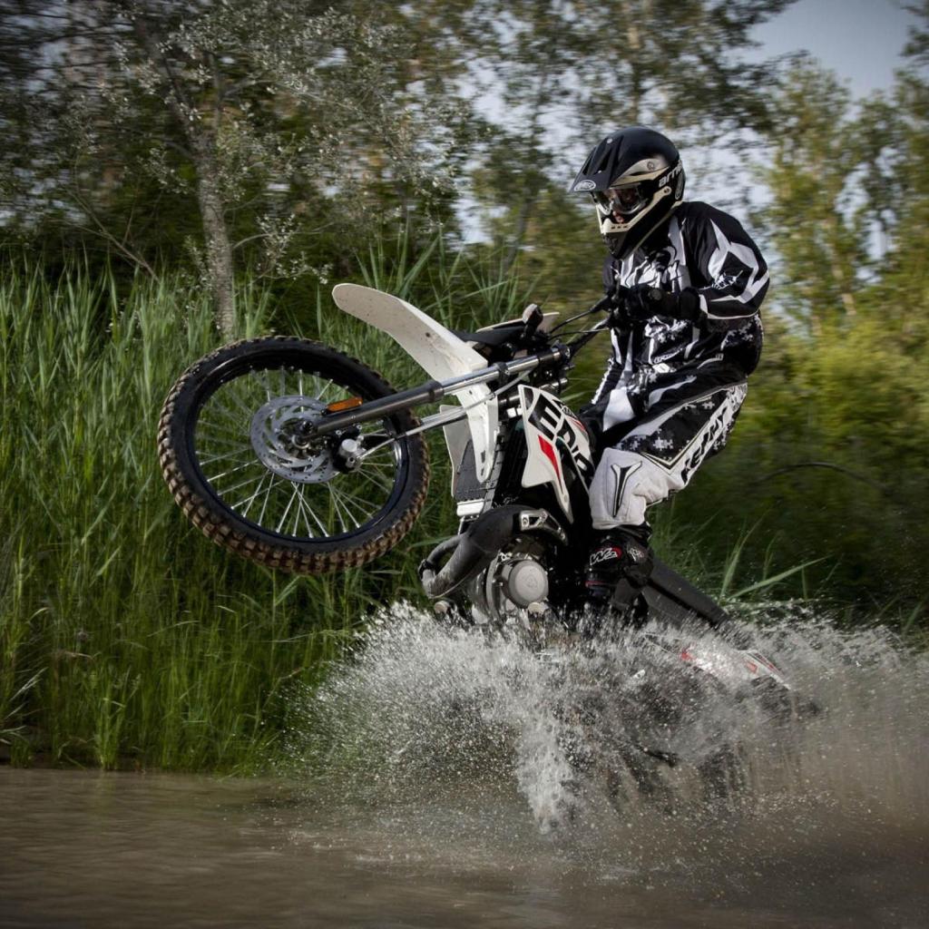 Обои Мотоциклист в воде