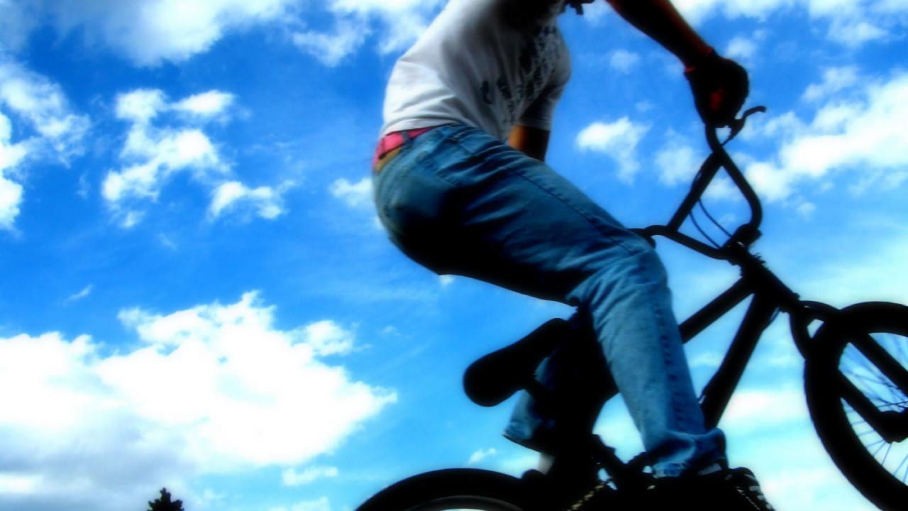 Обои Скачок с велосипедом
