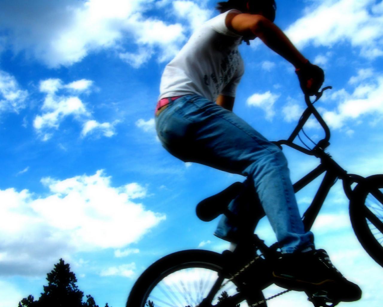 Обои Скачок с велосипедом