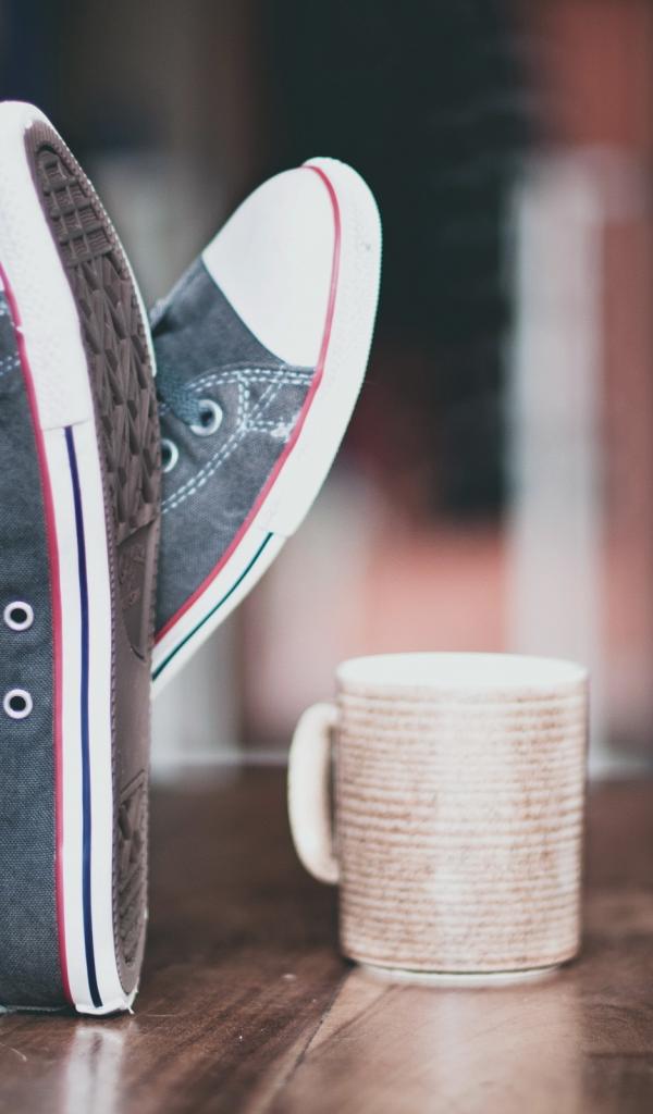 Обои Кеды и чашка на столе