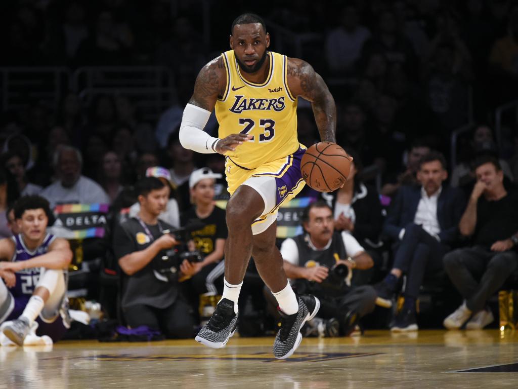Обои Баскетболист Леброн Джеймс на поле с мячом