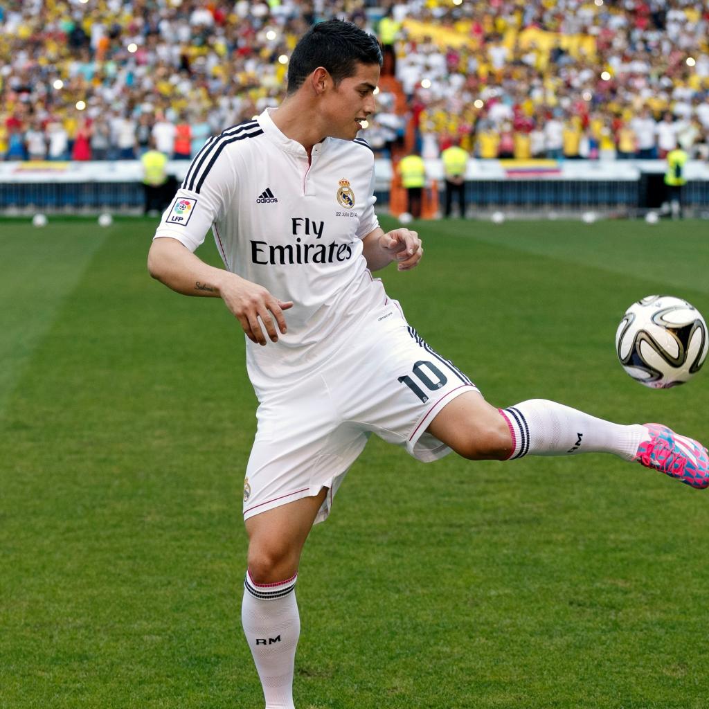 Обои Футболист Хамес Родригес играет с мячом