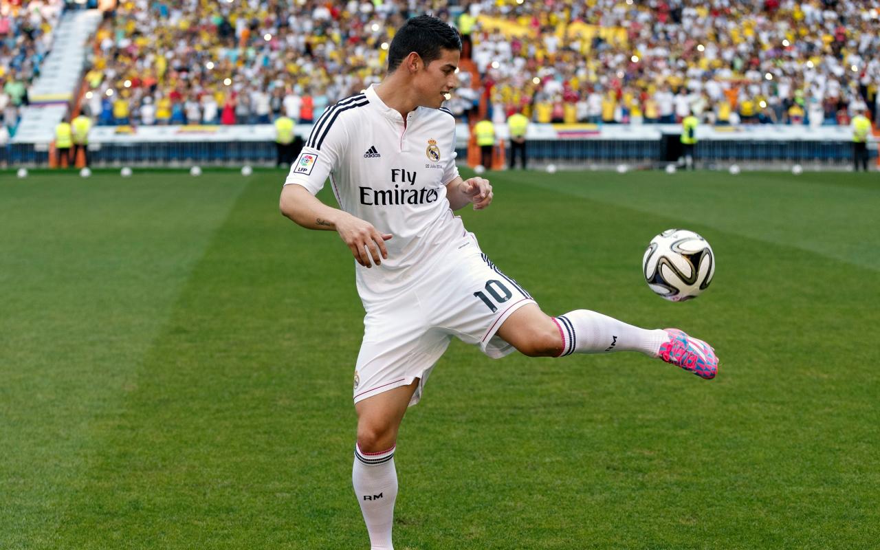 Обои Футболист Хамес Родригес играет с мячом