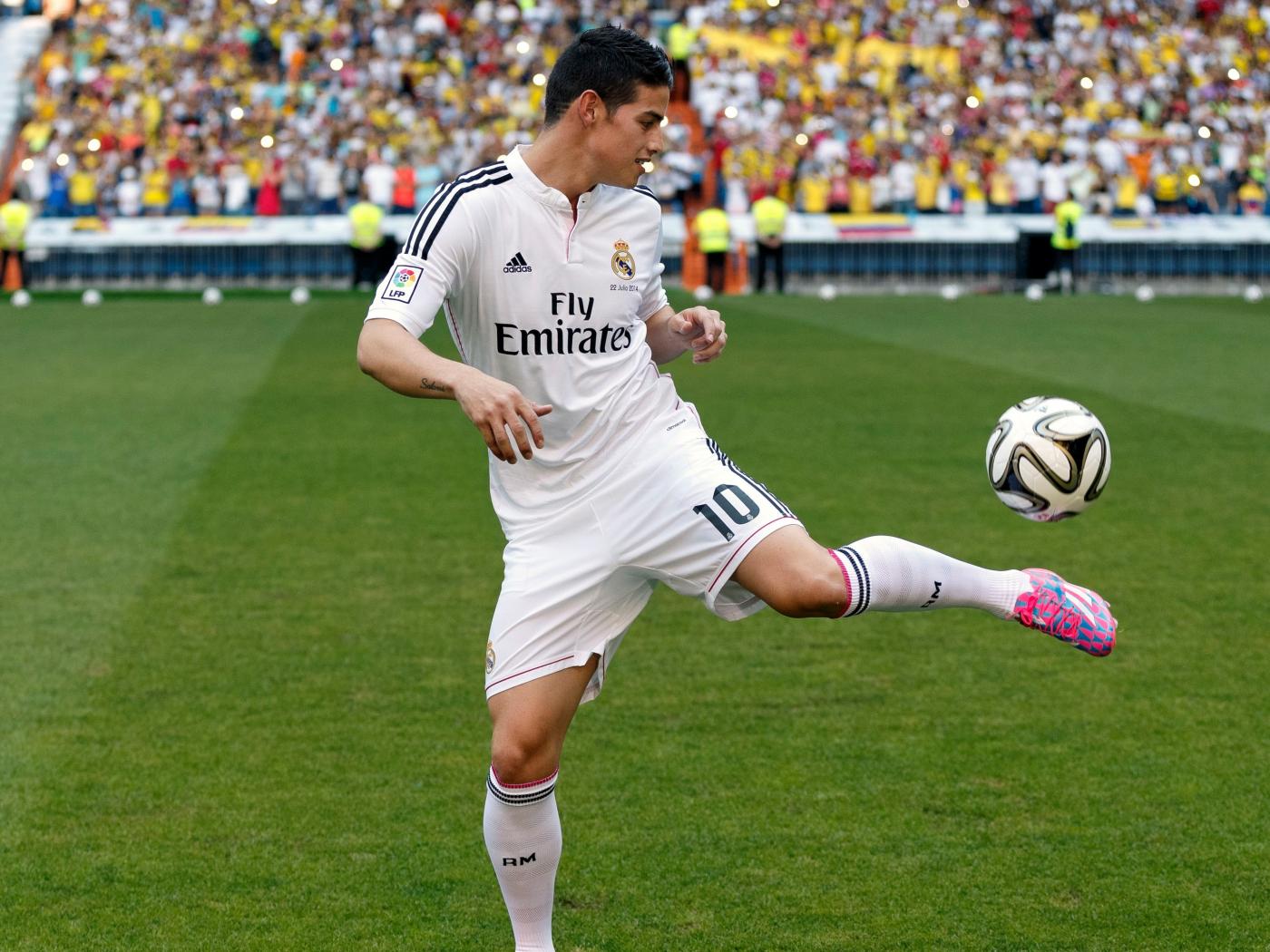 Обои Футболист Хамес Родригес играет с мячом