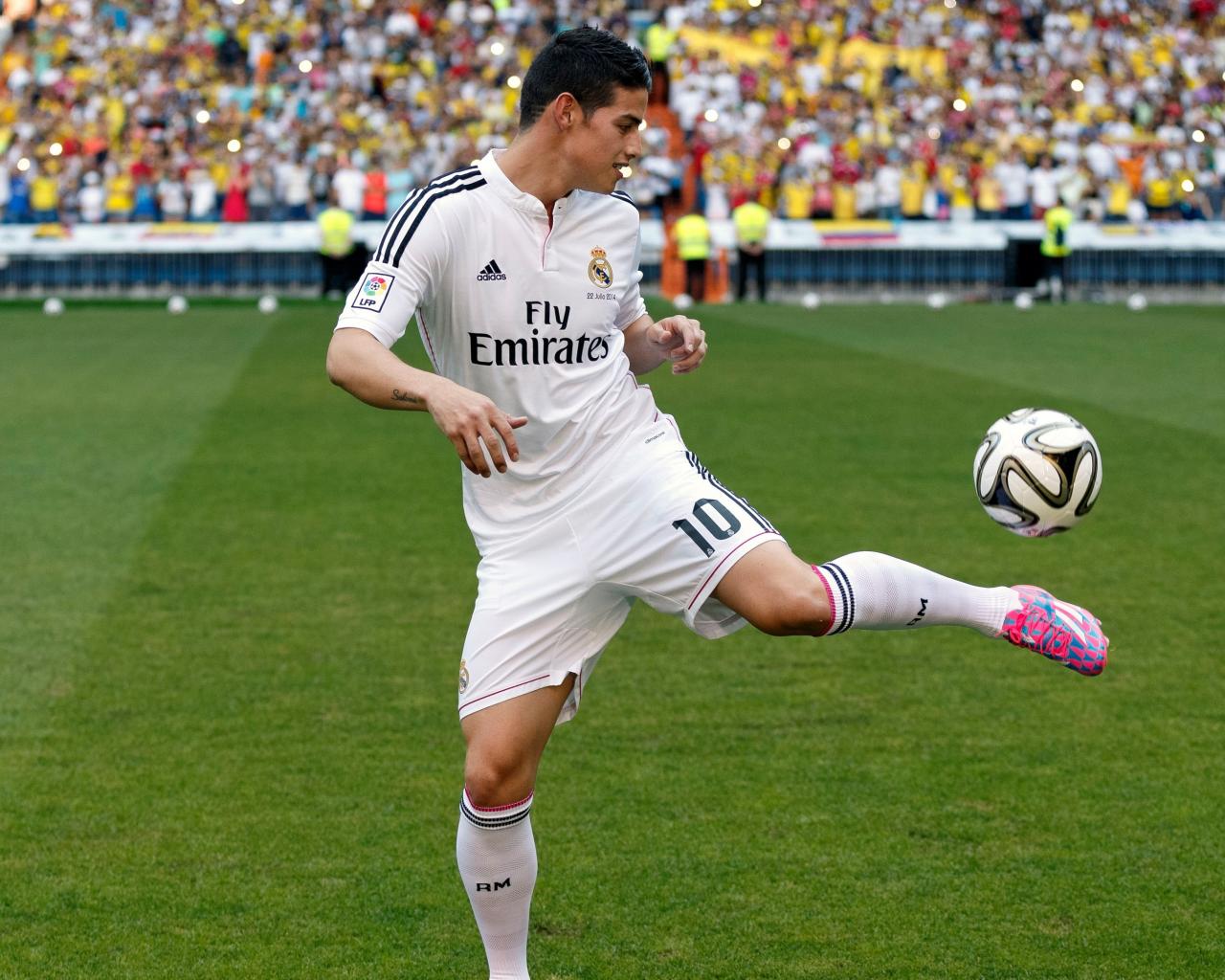 Обои Футболист Хамес Родригес играет с мячом