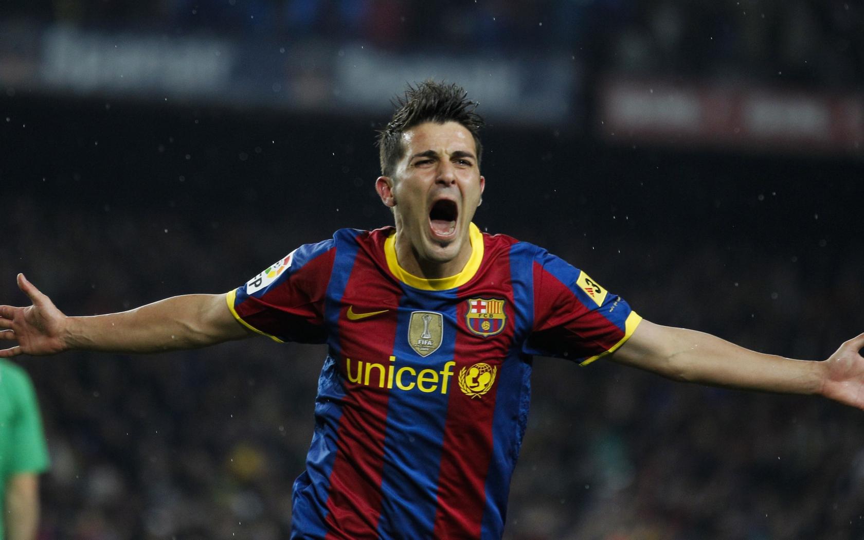 Обои Футболист Давид Вилья радуется забитому голу