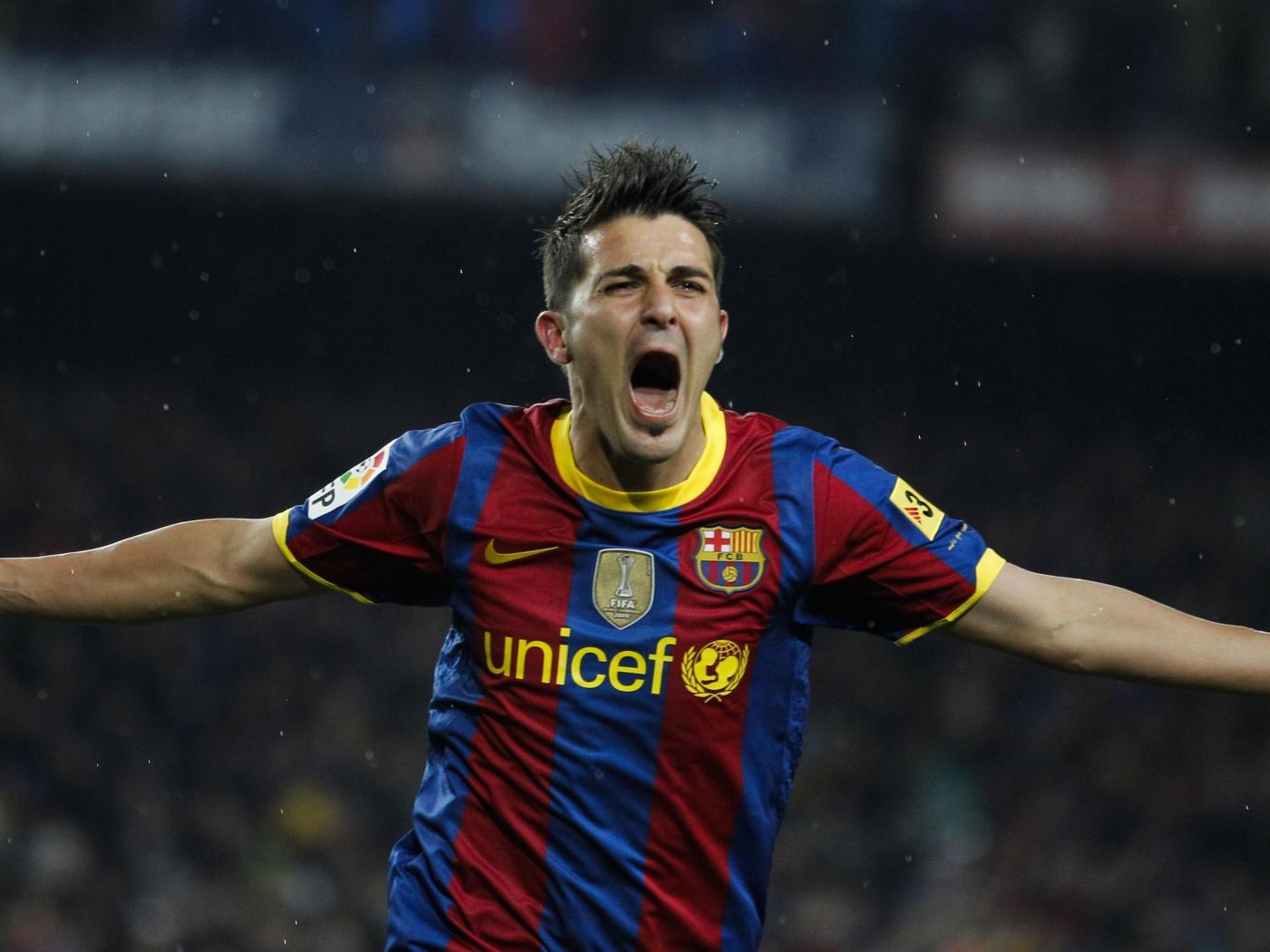 Обои Футболист Давид Вилья радуется забитому голу