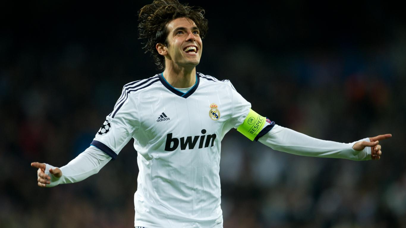 Обои Бразильский футболист Кака радуется на поле