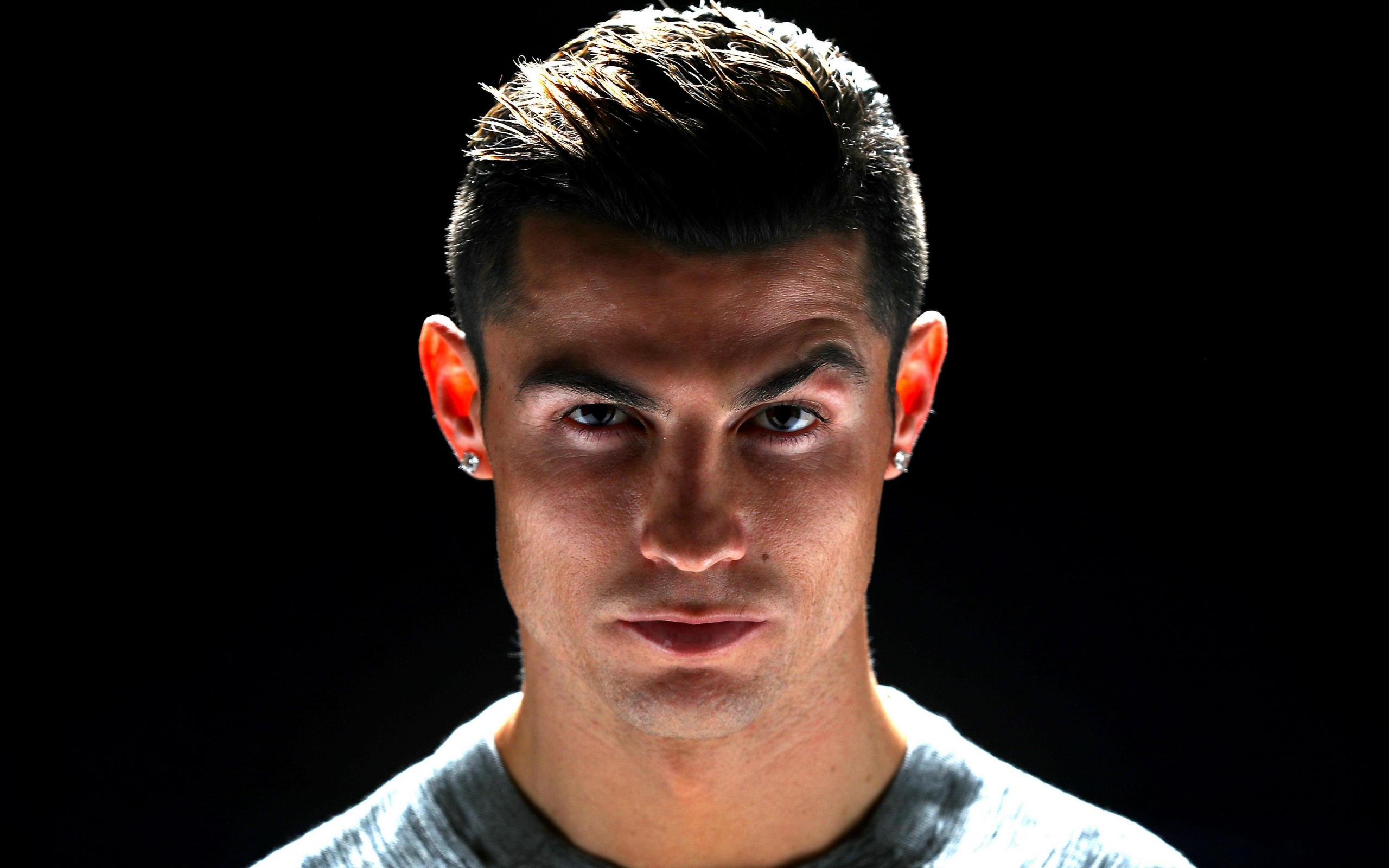 Обои Красивый футболист Криштиану Роналду фото на черном фоне