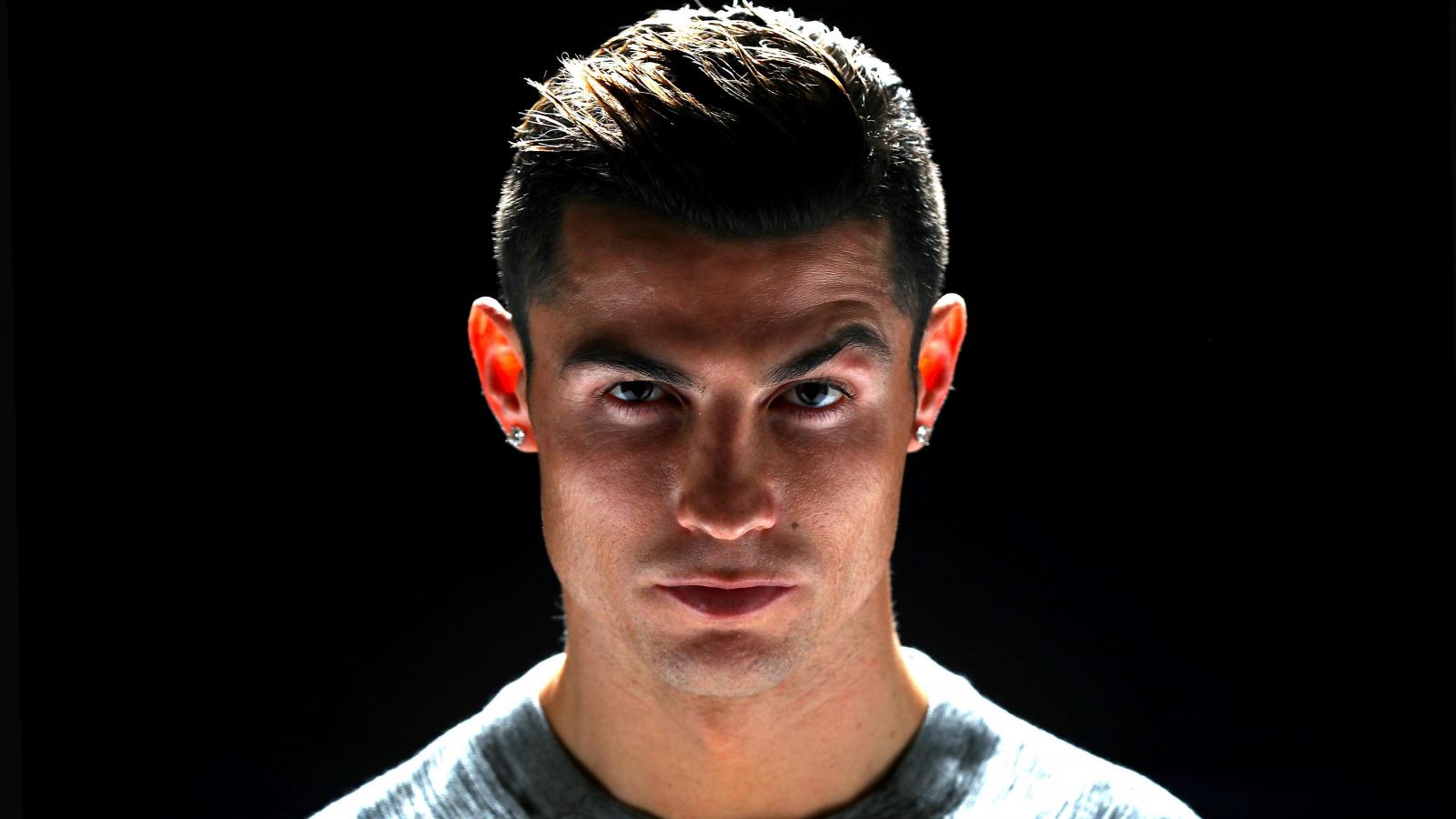 Обои Красивый футболист Криштиану Роналду фото на черном фоне