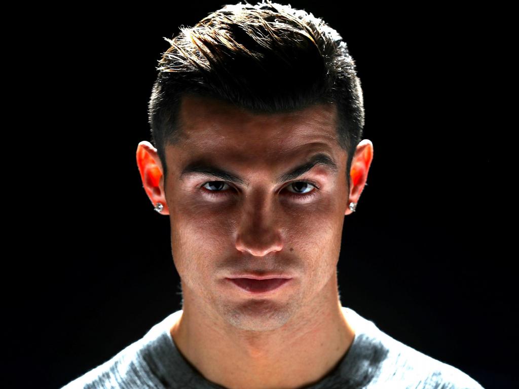 Обои Красивый футболист Криштиану Роналду фото на черном фоне