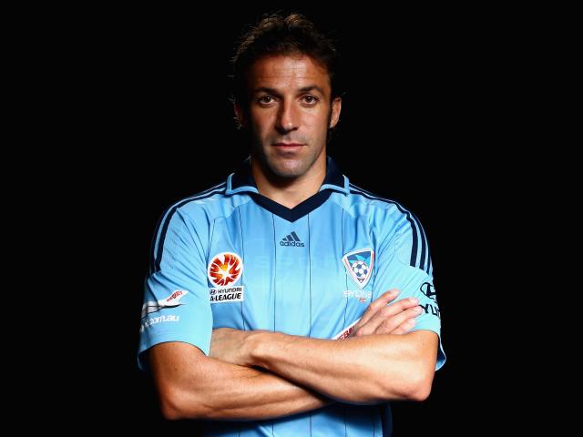 Обои Итальянский футболист Алессандро Дель Пьеро на черном фоне