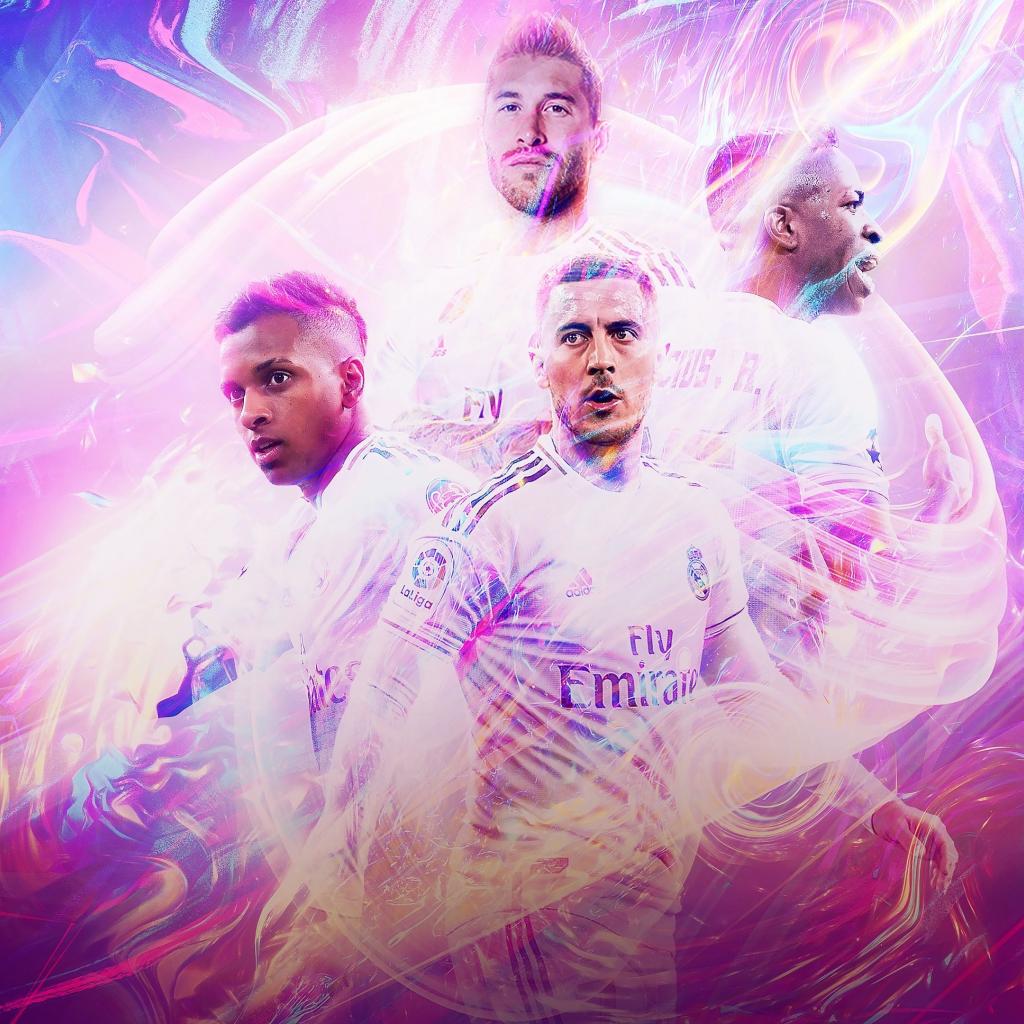 Обои Футболисты из клуба Real Madrid на разноцветном фоне