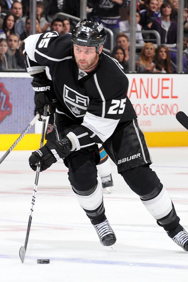 Обои Хоккеист клуба Лос-Анджелес Кингз на льду с клюшкой