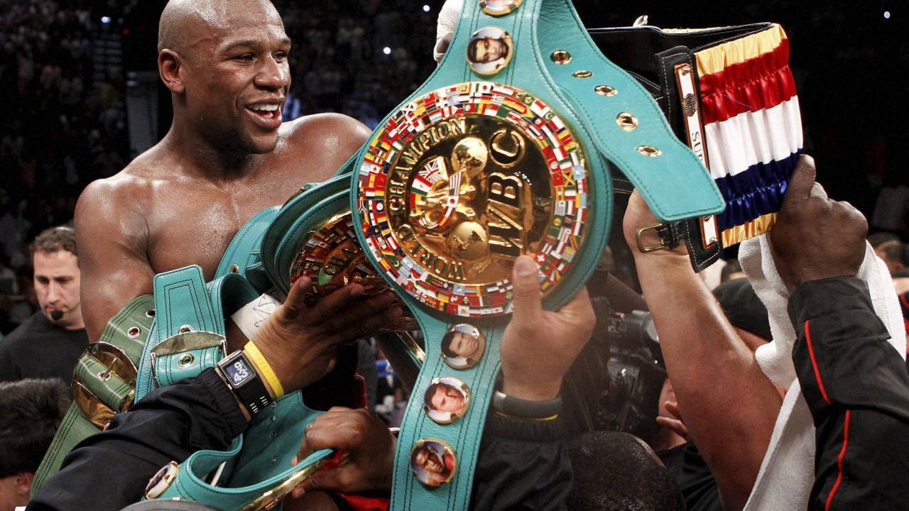 Обои Боксер Флойд Мэйуэзер-младший и его призы