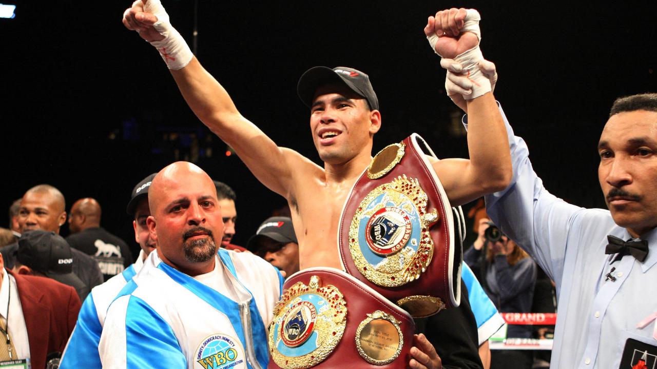 Обои Известный боксер Феликс Тринидад и его пояса