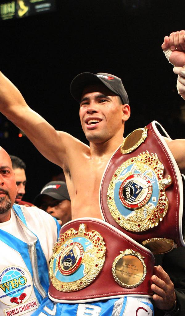 Обои Известный боксер Феликс Тринидад и его пояса