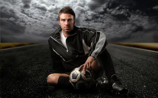 Обои Футболист на дороге