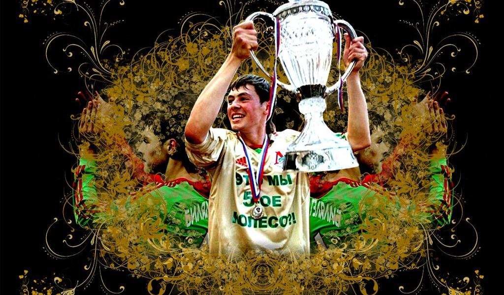 Обои Футболист Динияр Билялетдинов с кубком России