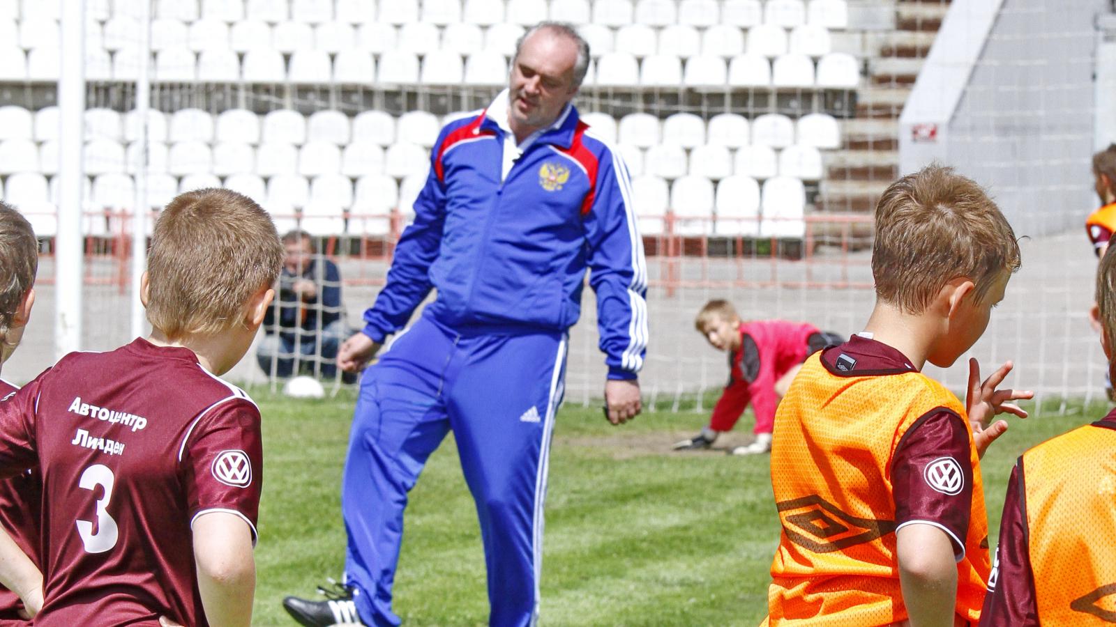 » Обои Легендарный вратарь Игорь Шалимов с юными футболистами