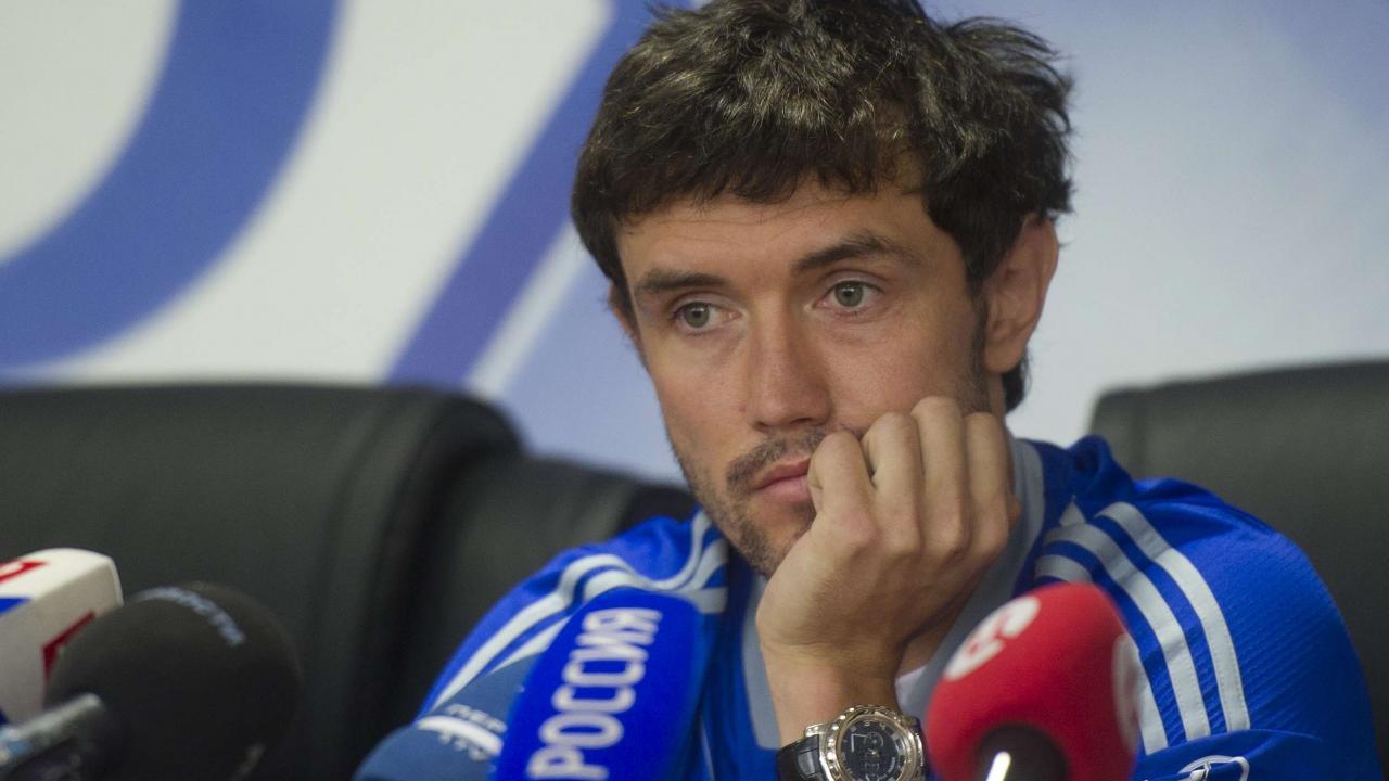 Обои Полузащитник Динамо Юрий Жирков на пресс конференции