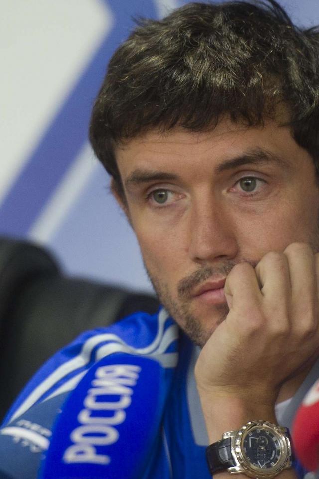 Обои Полузащитник Динамо Юрий Жирков на пресс конференции