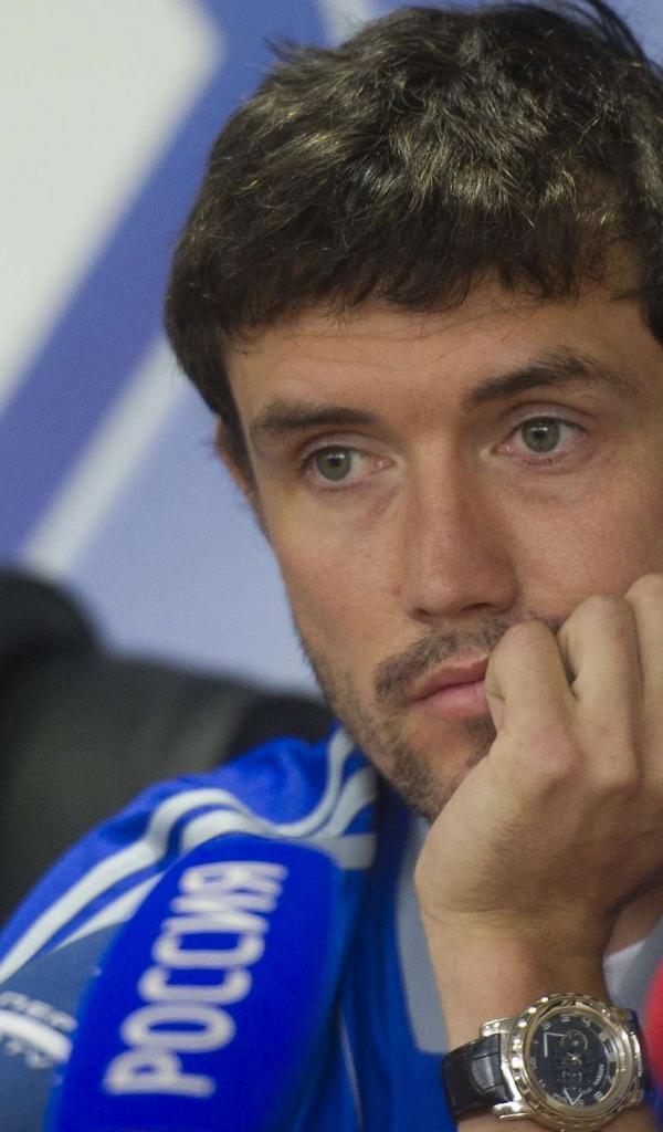 Обои Полузащитник Динамо Юрий Жирков на пресс конференции