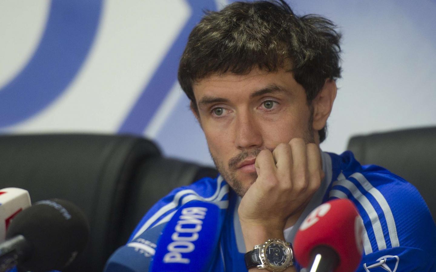 Обои Полузащитник Динамо Юрий Жирков на пресс конференции