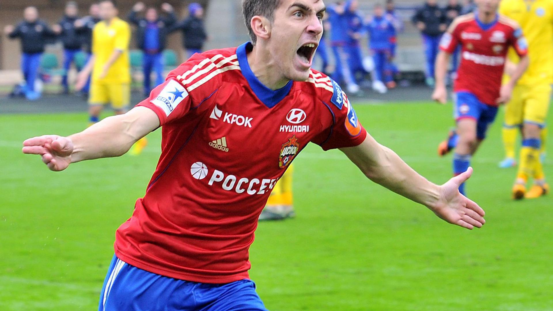 Обои Нападающий ЦСКА Константин Базелюк на поле