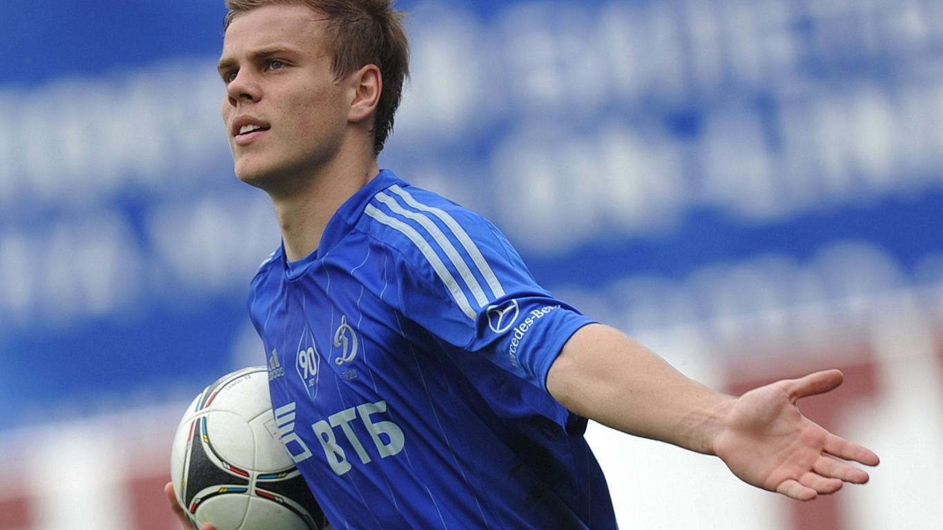 Обои Нападающий Динамо Александр Кокорин с мячом