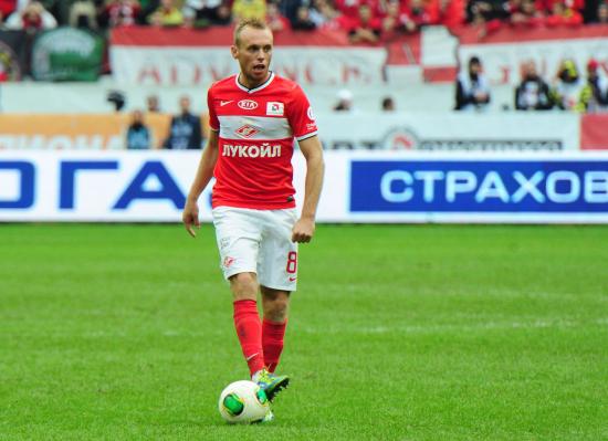 Обои Денис Глушаков полузащитник Спартака с мячом