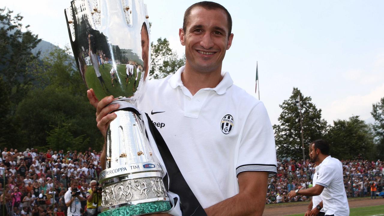Обои Лучший игрок Ювентуса Джорджо Кьеллини с трофеем