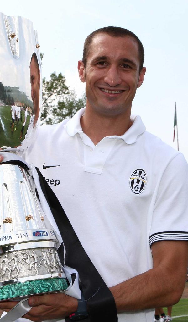 Обои Лучший игрок Ювентуса Джорджо Кьеллини с трофеем
