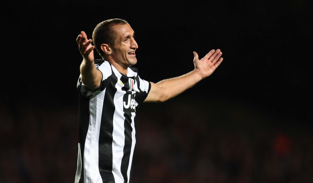 Обои Игрок Ювентуса Джорджо Кьеллини на черном фоне
