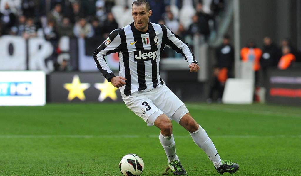 Обои Игрок Ювентуса Джорджо Кьеллини с мячом